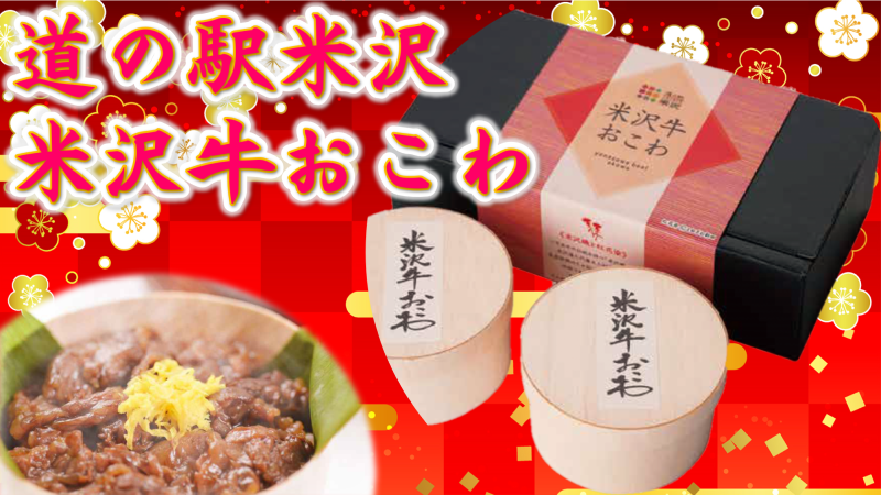 当道の駅オリジナル商品「米沢牛おこわ」は米沢牛を贅沢に使用し、