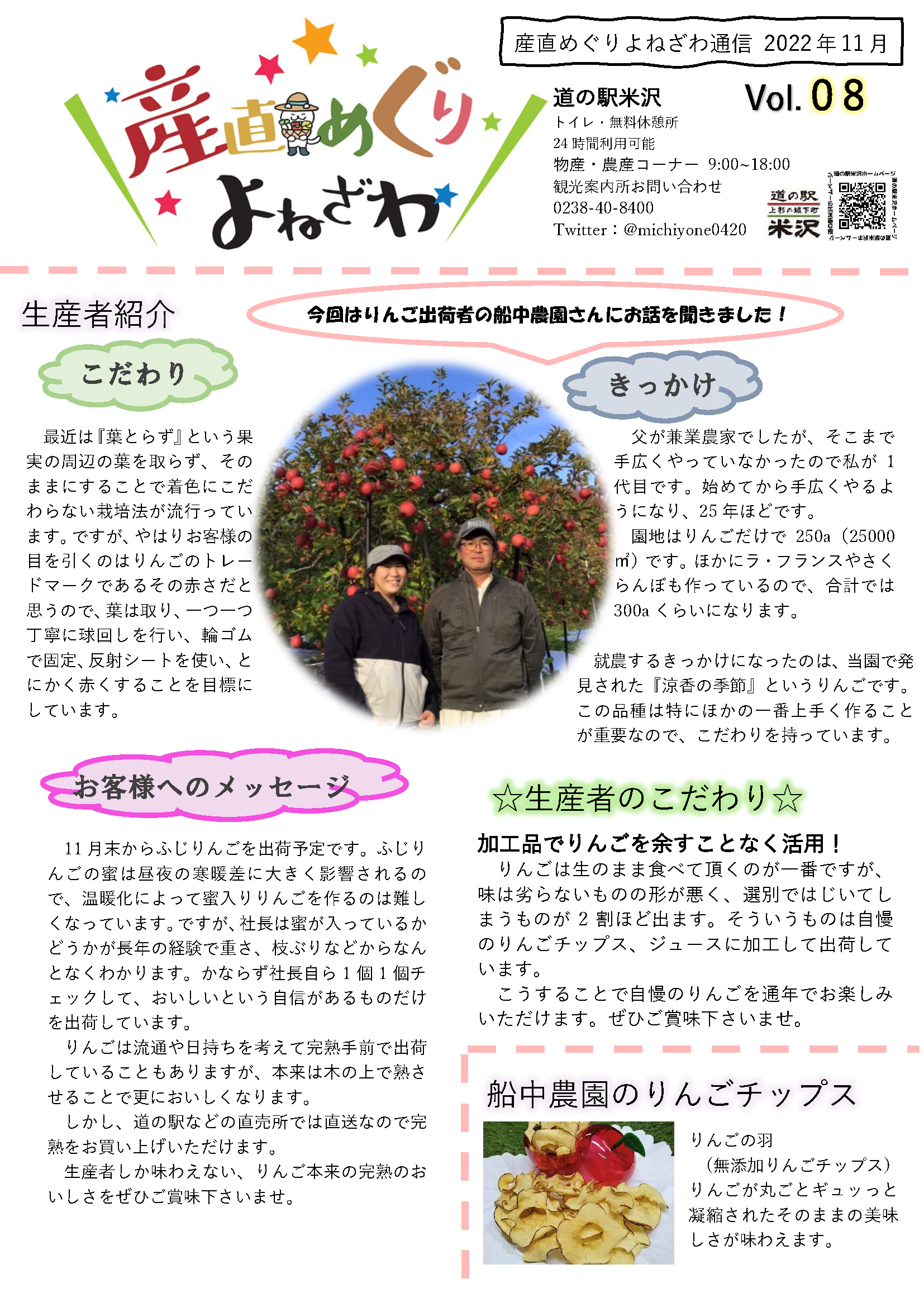 道の駅米沢に出店していただいている農家さんを特集する「産直めぐりよねざわ通信」更新しました!