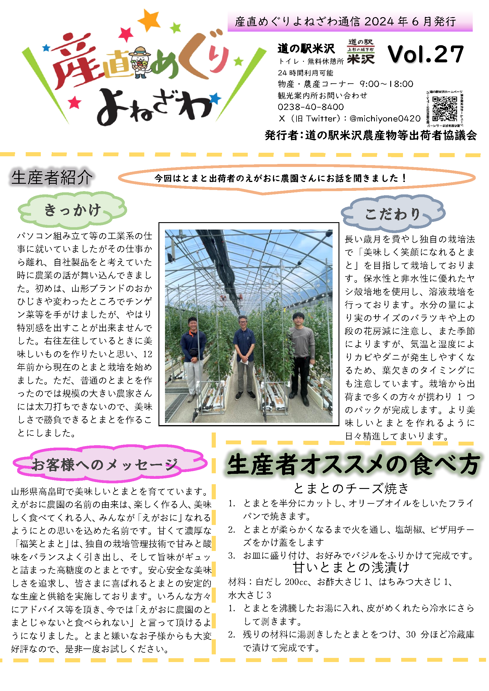 道の駅米沢に出店していただいている農家さんを特集する