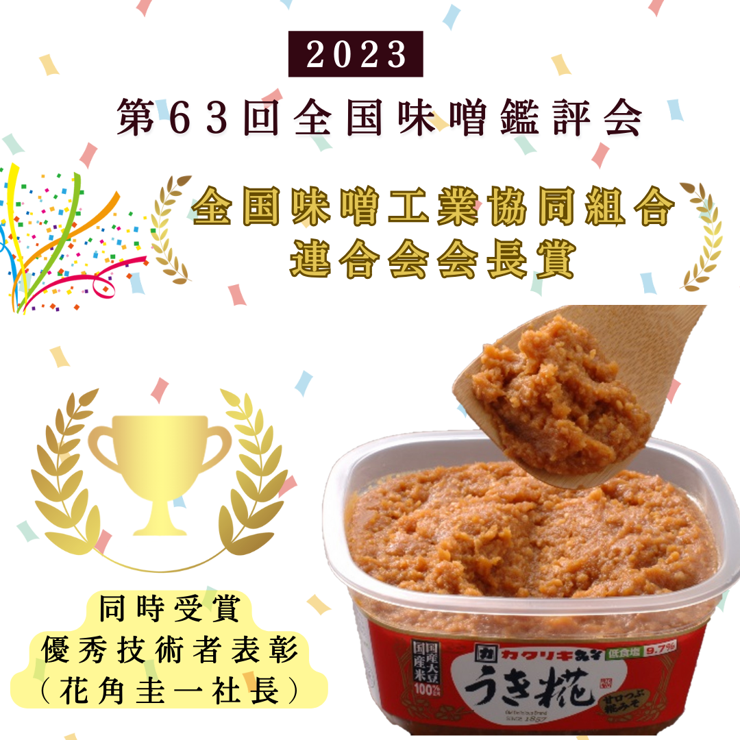 3年ぶりに開催された全国味噌鑑評会で、花角味噌醸造の『うき糀みそ』が、全国味噌工業協同組合連合会会長賞を受賞しました。