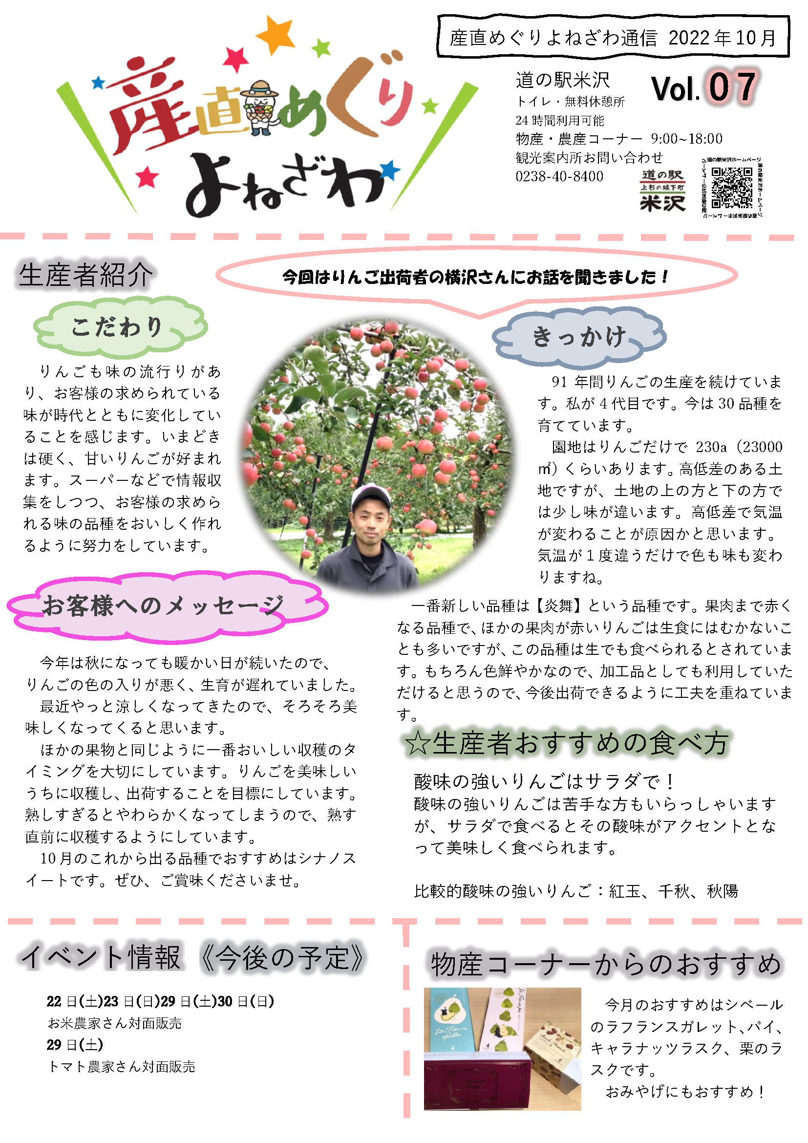 道の駅米沢に出店していただいている農家さんを特集する「産直めぐりよねざわ通信」更新しました!