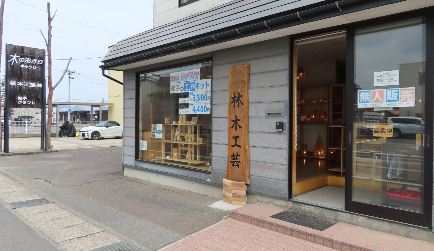 ローソン米沢丸の内二丁目店のすぐ東側に、「木のあかりギャラリー」の店舗があります。