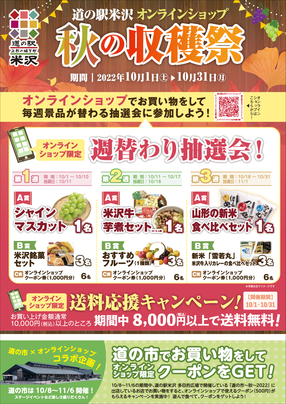 今回は、収穫の秋にちなんで、お米や果物、米沢牛のいも煮セットなど、豪華景品が目白押しです。