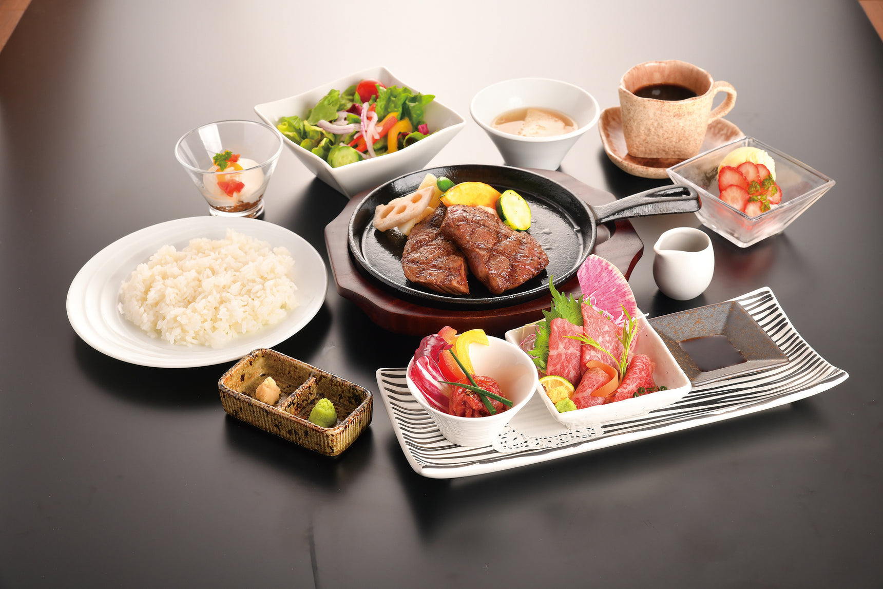 贅沢ランチにおすすめ『米沢牛ステーキ2種盛り&牛刺身プレミアムコース』✨