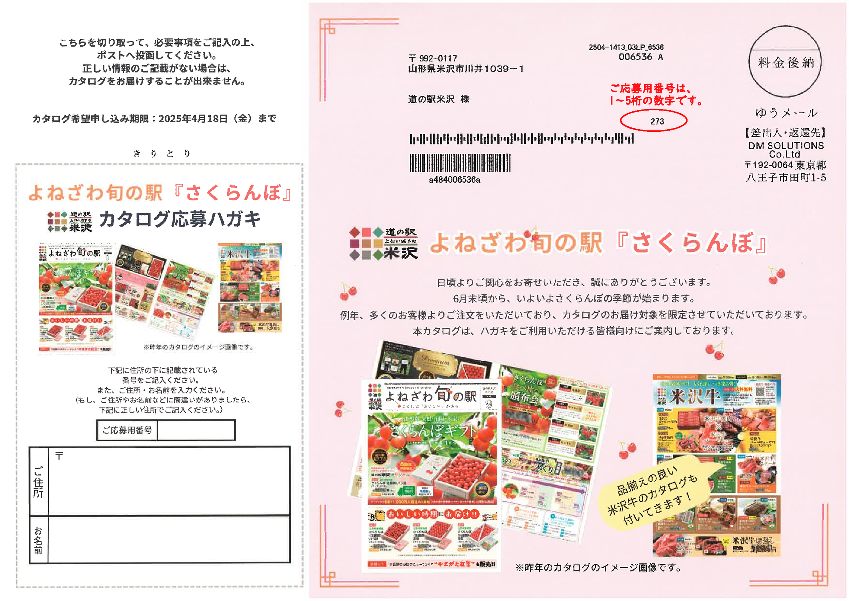 この度、さくらんぼカタログ応募用紙に関しまして、応募番号が分かりづらいとのご指摘を頂戴いたしました。