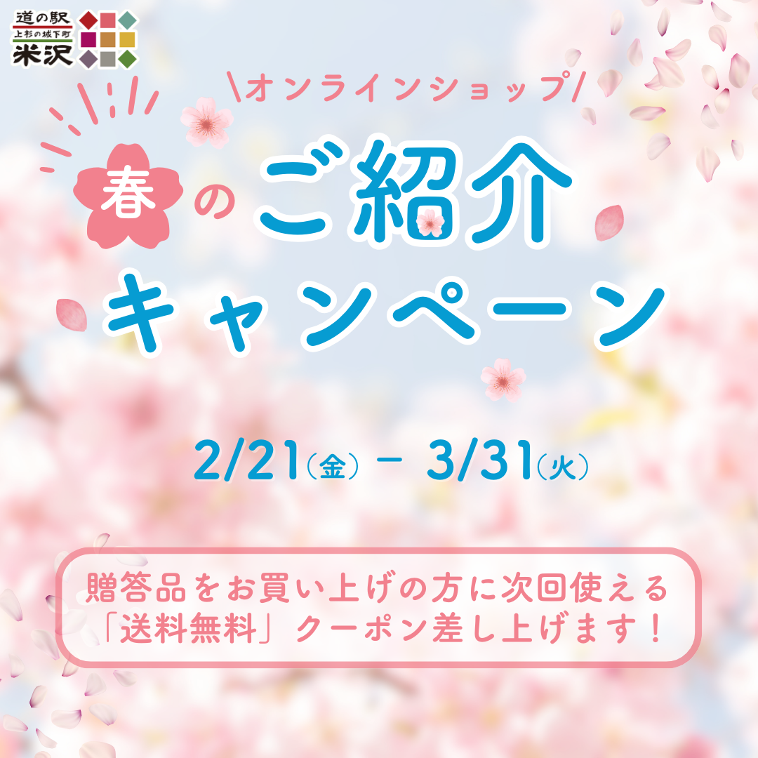 メルマガ会員の方にはお知らせしておりましたが、2月21日(金)~ 3月31日(火)まで、オンラインショップでは「【送料無料】ご紹介キャンペーン」を開催しております。