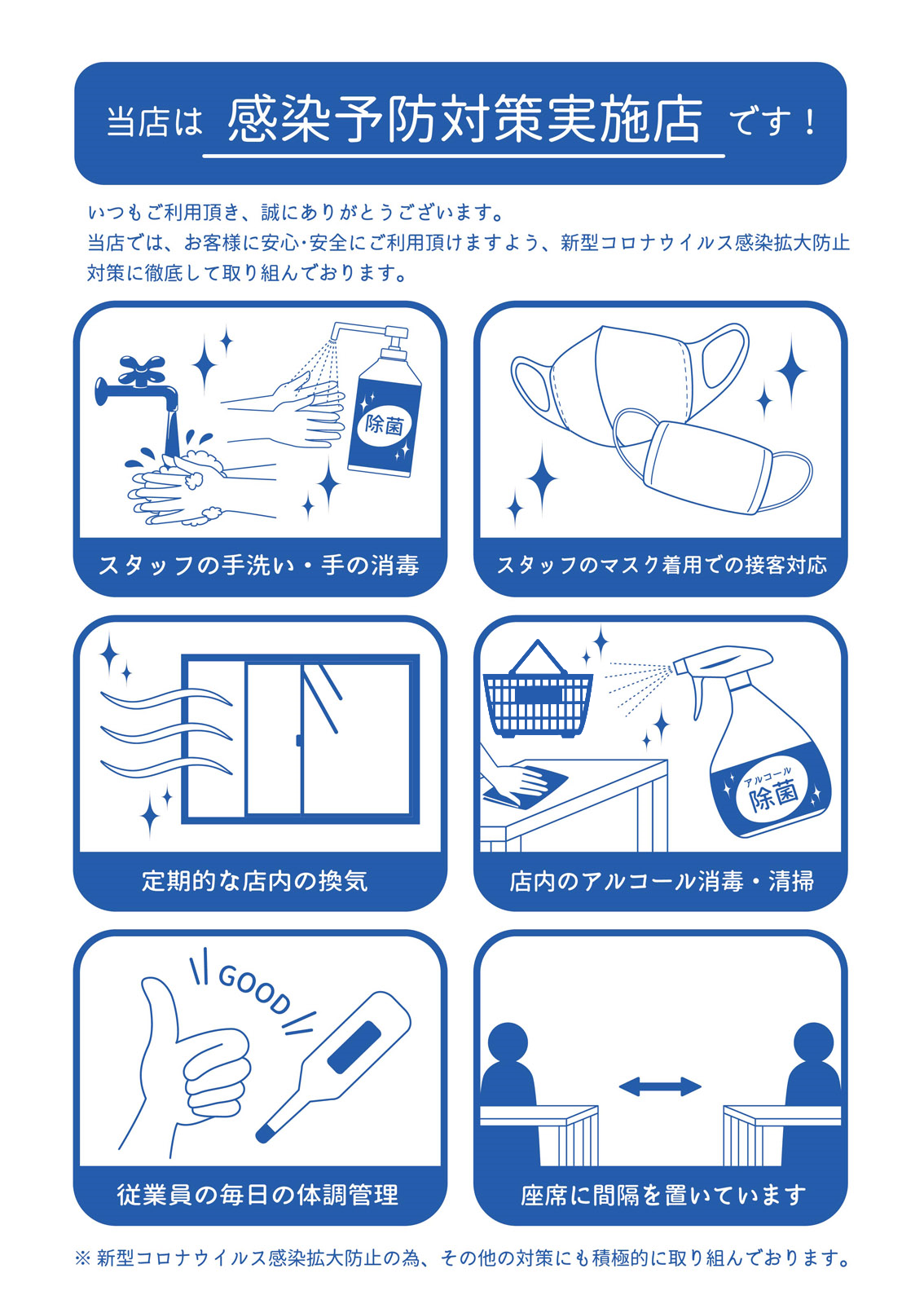 4.店内のアルコール消毒。清掃