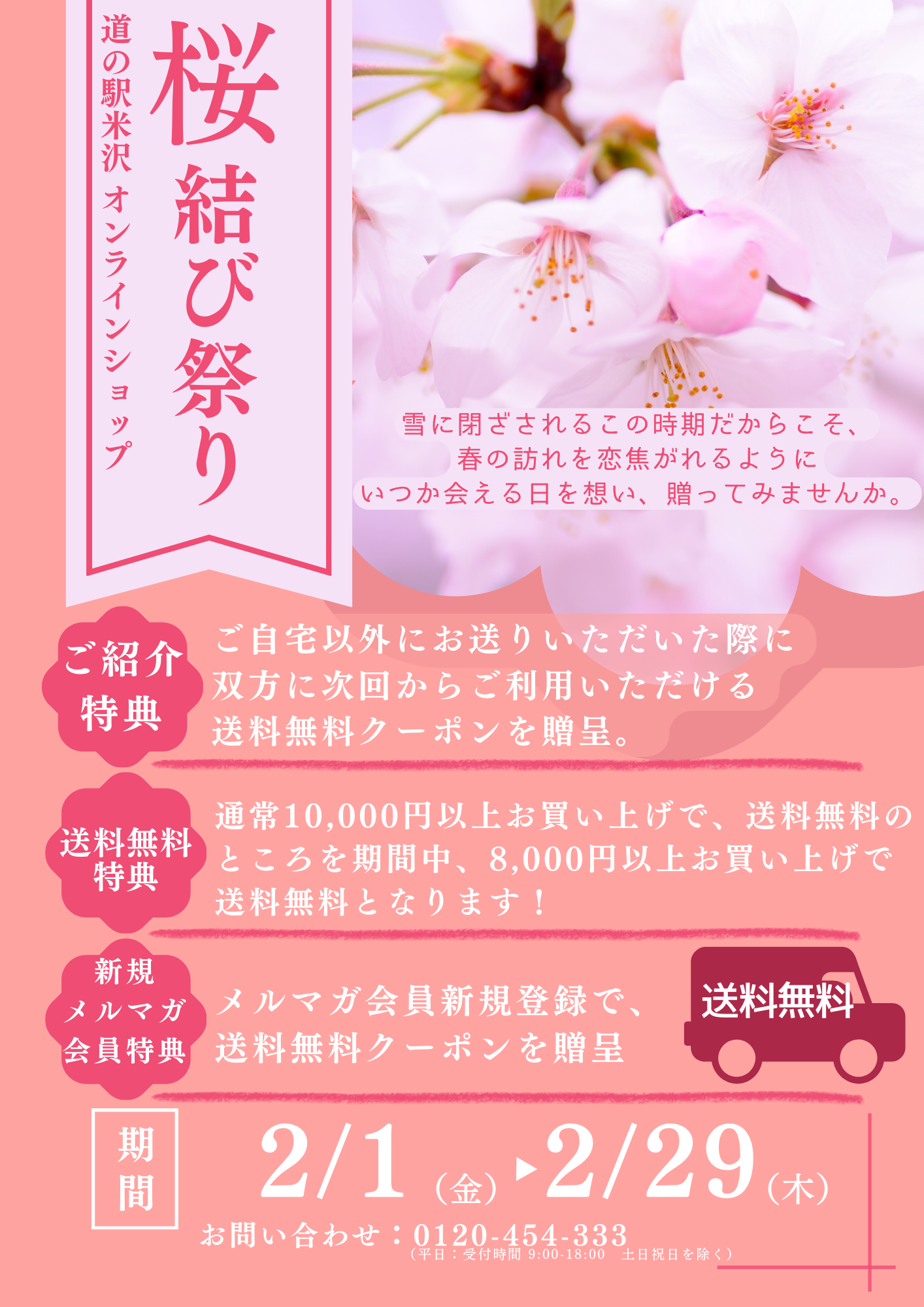 道の駅米沢のオンラインショップでは、『桜結び祭り』を今年も開催します。
