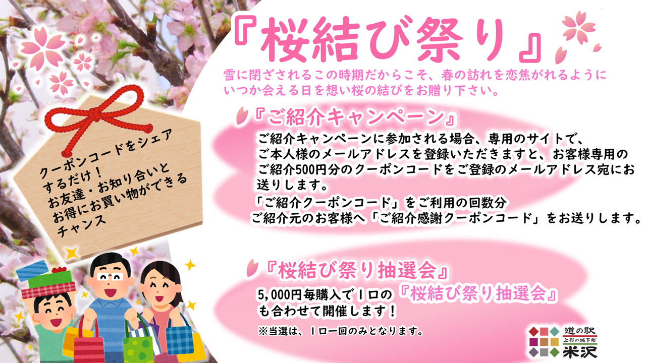 ④道の駅米沢オンラインショップで「ご紹介クーポン500円分」をお使い頂きます。
